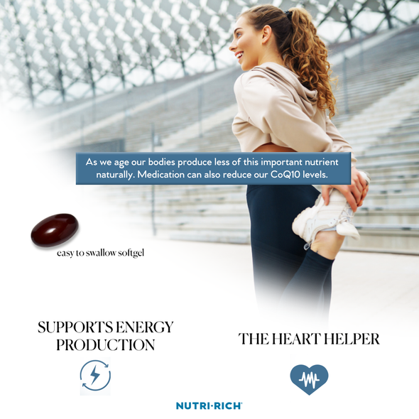 Coenzyme Q10 is produced naturally in the body, but levels deplete over time. CoQ10 can boost cellular energy for large organs like the heart, lungs, and liver1